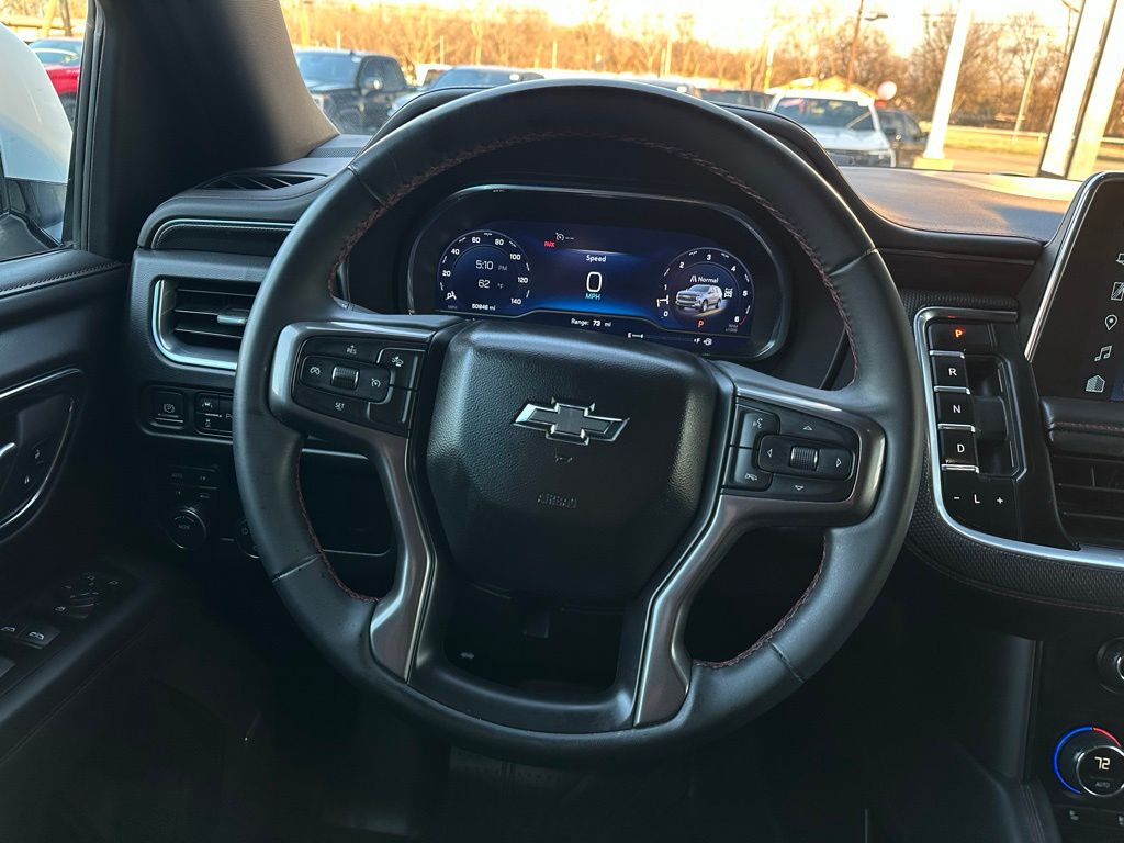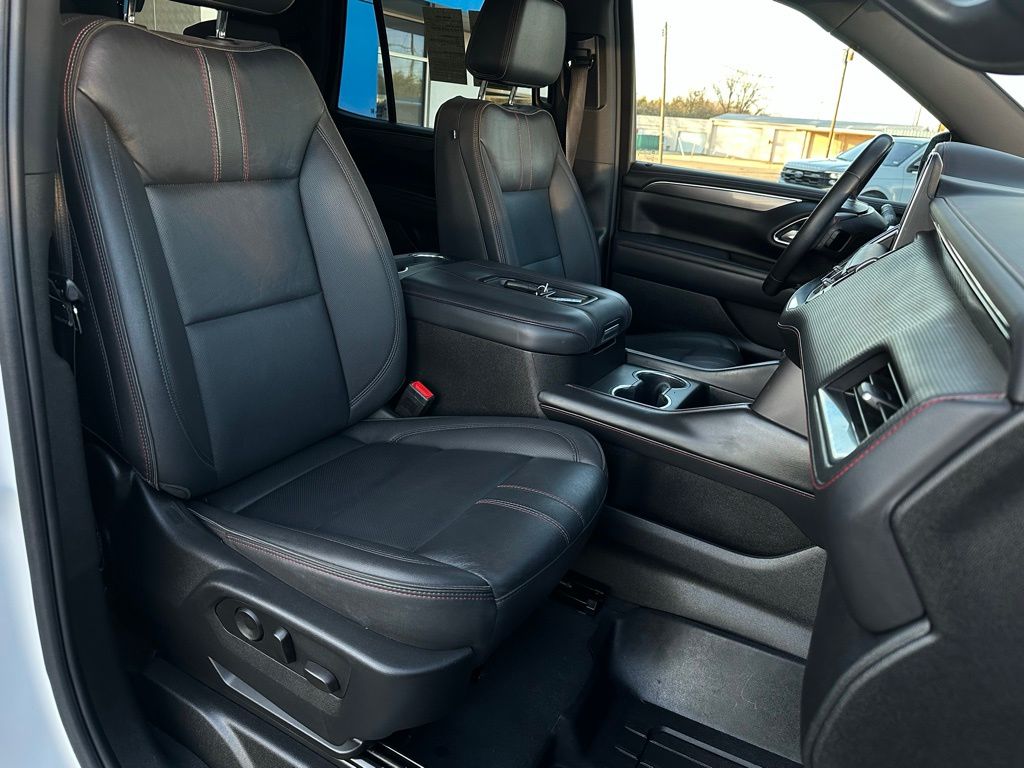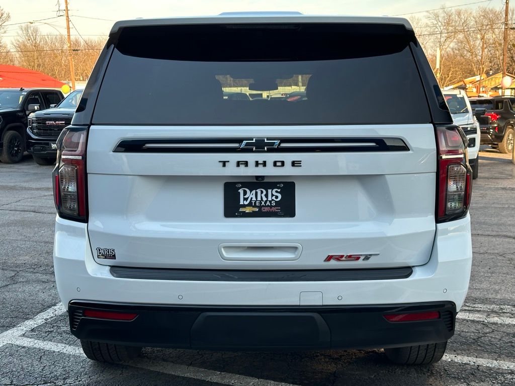 Recent Arrival! Clean CARFAX. Summit White 2023 Chevrolet Tahoe RST 10-Speed Automatic with Overdrive RST EcoTec3 5.3L V8 4WD4WD, Jet Black/Victory Red Leather. Odometer is 10970 miles below market average!
