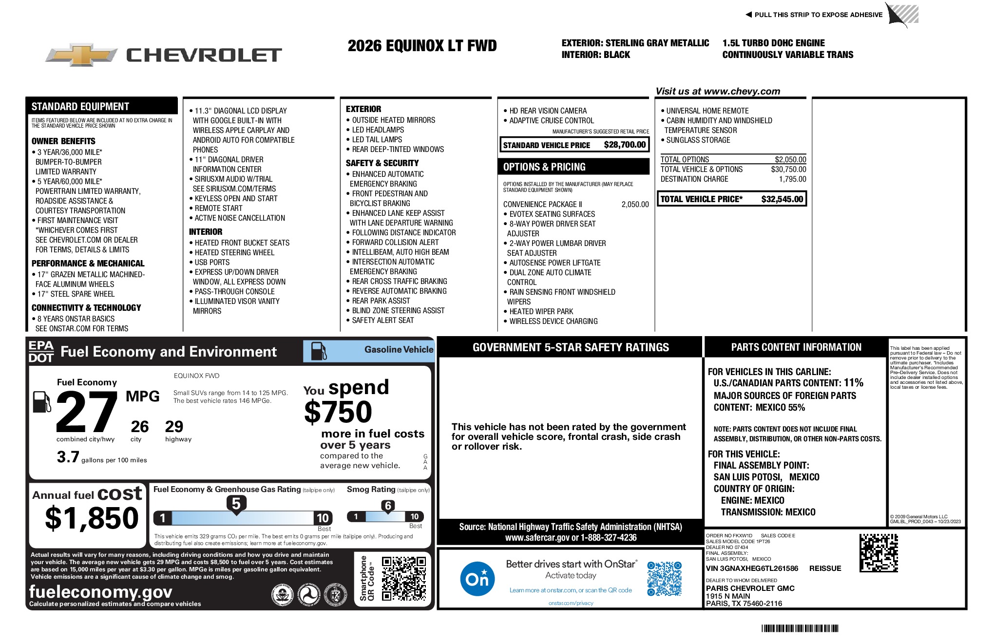 Chevrolet 2026 Equinox LT 1.5L DOHC FWD CVT Sterling Gray Metallic