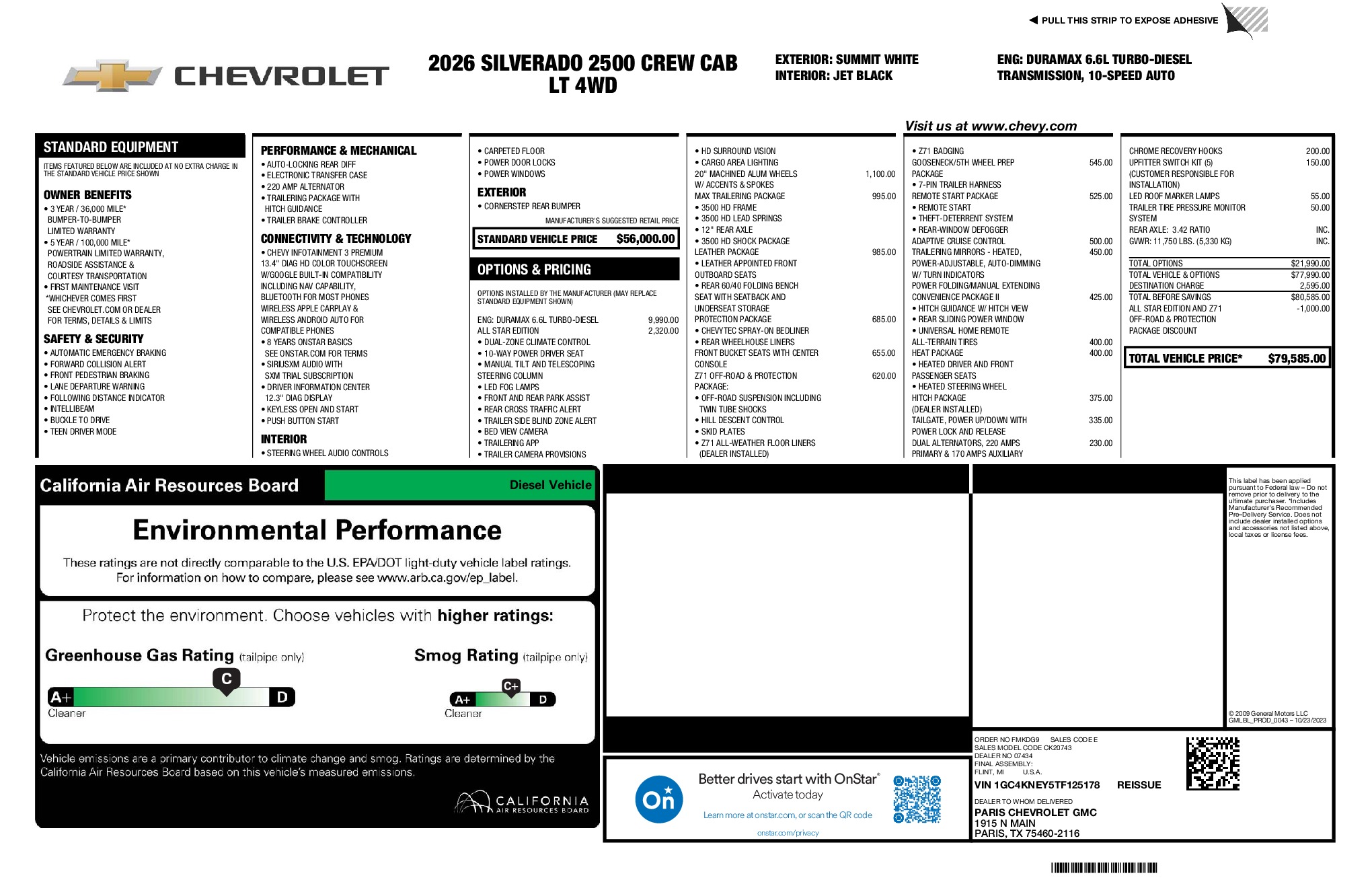 Chevrolet 2026 Silverado 2500HD LT Duramax 6.6L V8 Turbodiesel 4WD 10-Speed Automatic Summit White