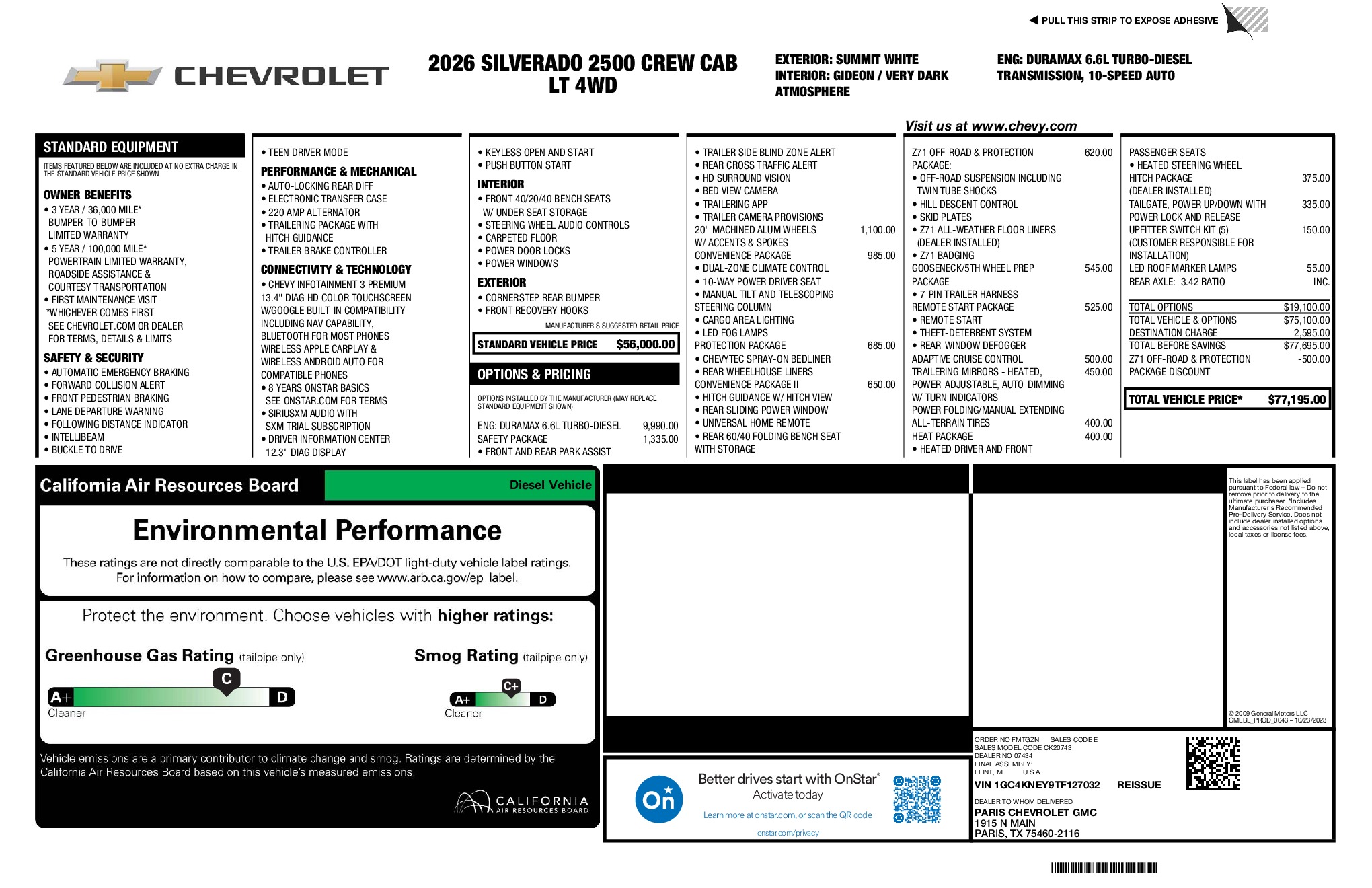 Chevrolet 2026 Silverado 2500HD LT Duramax 6.6L V8 Turbodiesel 4WD 10-Speed Automatic Summit White