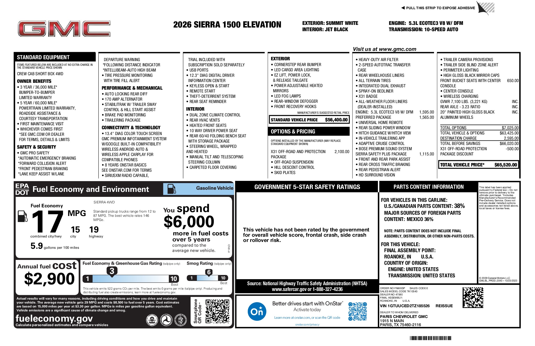 GMC 2026 Sierra 1500 Elevation EcoTec3 5.3L V8 4WD 10-Speed Automatic Summit White
