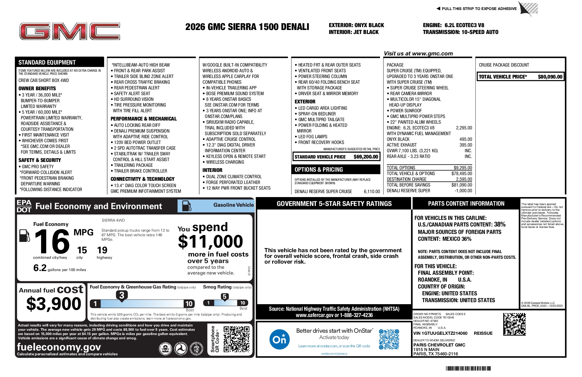 GMC 2026 Sierra 1500 Denali EcoTec3 6.2L V8 4WD 10-Speed Automatic Onyx Black