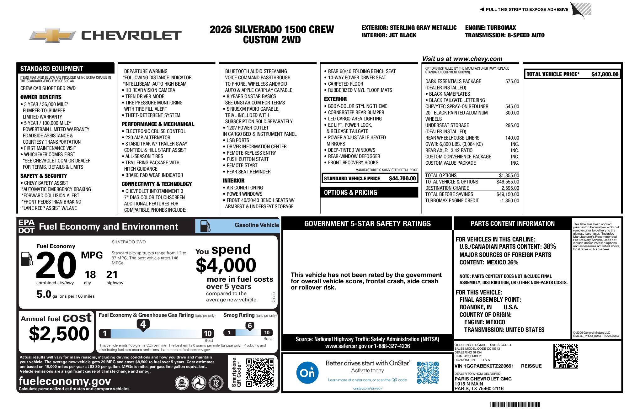 Chevrolet 2026 Silverado 1500 Custom 2.7L I4 Turbocharged DOHC 16V LEV3-SULEV30 310hp RWD 8-Speed Automatic Sterling Gray Metallic