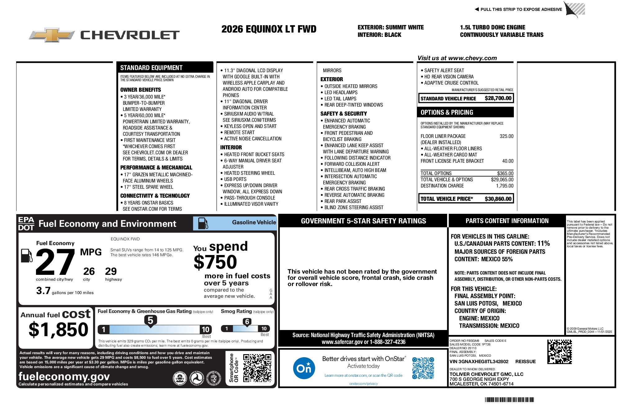 Chevrolet 2026 Equinox LT 1.5L DOHC FWD CVT Summit White