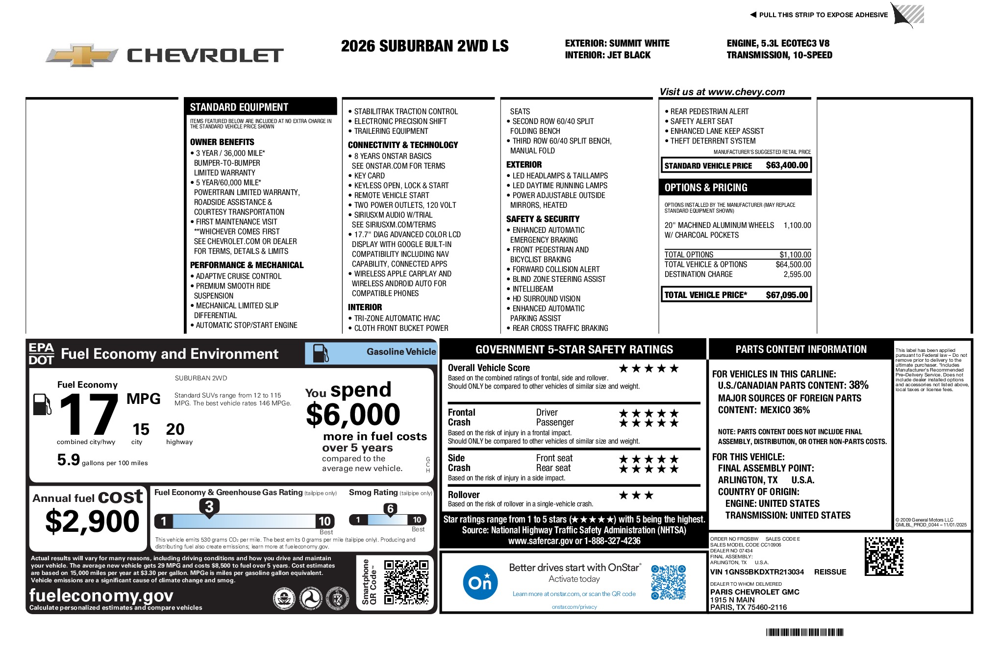 Chevrolet 2026 Suburban LS EcoTec3 5.3L V8 RWD 10-Speed Automatic with Overdrive Summit White