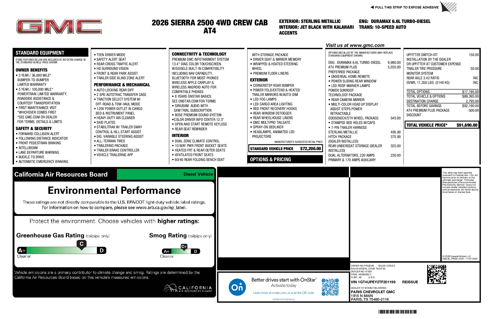 GMC 2026 Sierra 2500HD AT4 Duramax 6.6L V8 Turbodiesel 4WD 10-Speed Automatic Sterling Metallic