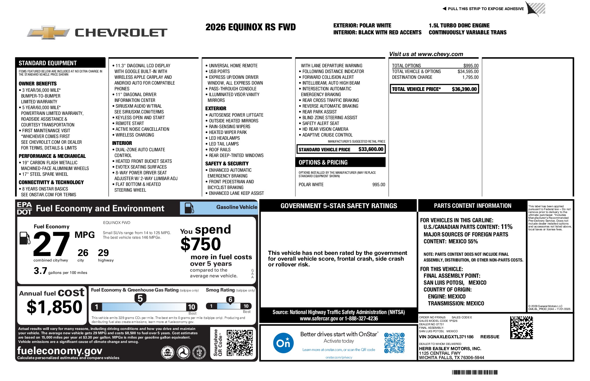 Chevrolet 2026 Equinox RS 1.5L DOHC FWD CVT Polar White Tricoat