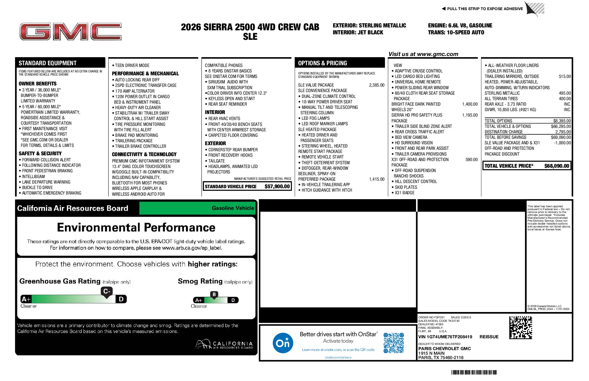 GMC 2026 Sierra 2500HD SLE 6.6L V8 4WD 10-Speed Automatic Sterling Metallic