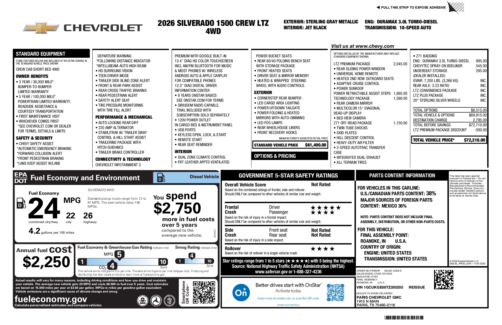 Chevrolet 2026 Silverado 1500 LTZ 3.0L I6 4WD 10-Speed Automatic Sterling Gray Metallic