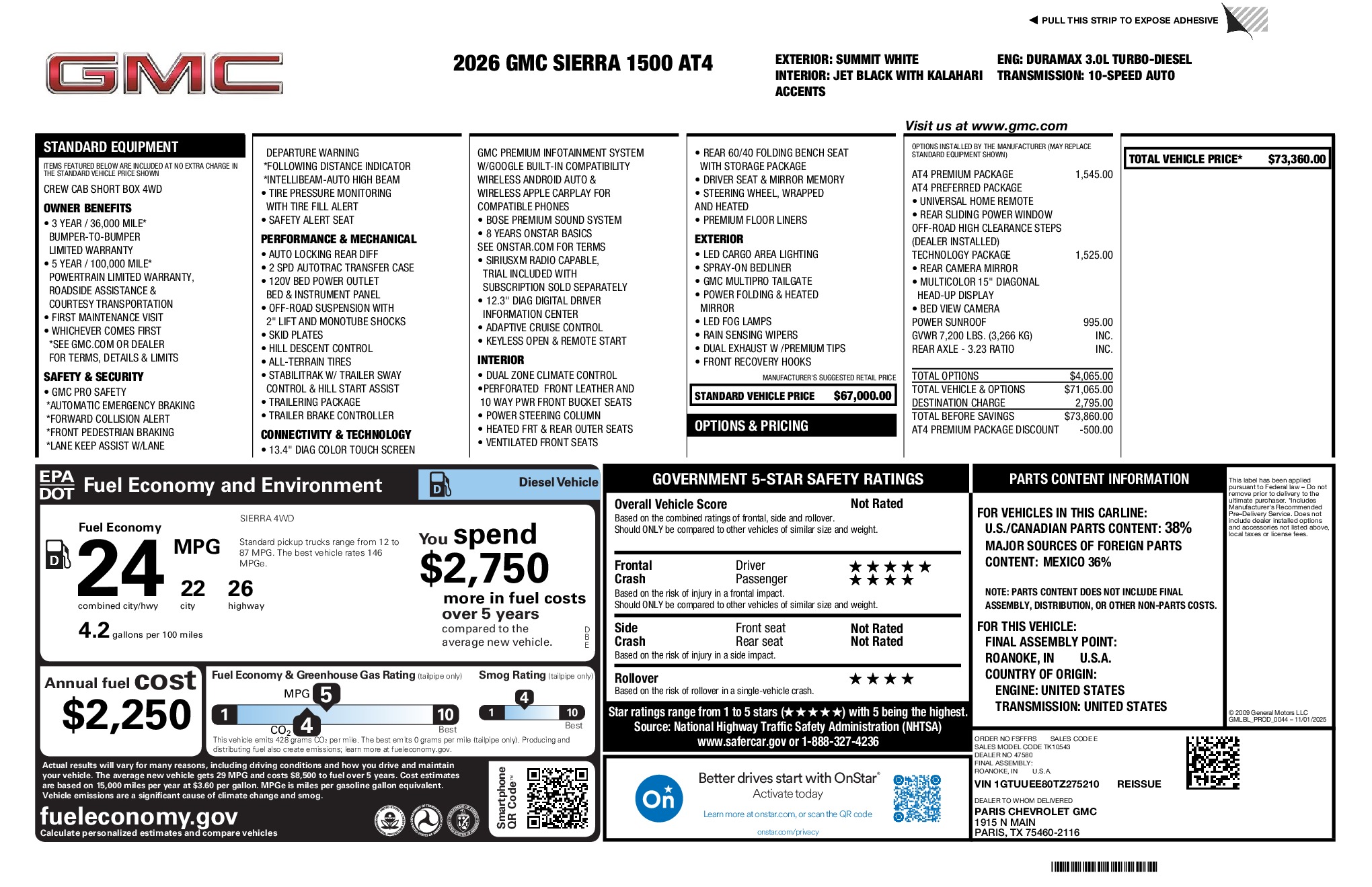GMC 2026 Sierra 1500 AT4 3.0L I6 4WD 10-Speed Automatic Summit White