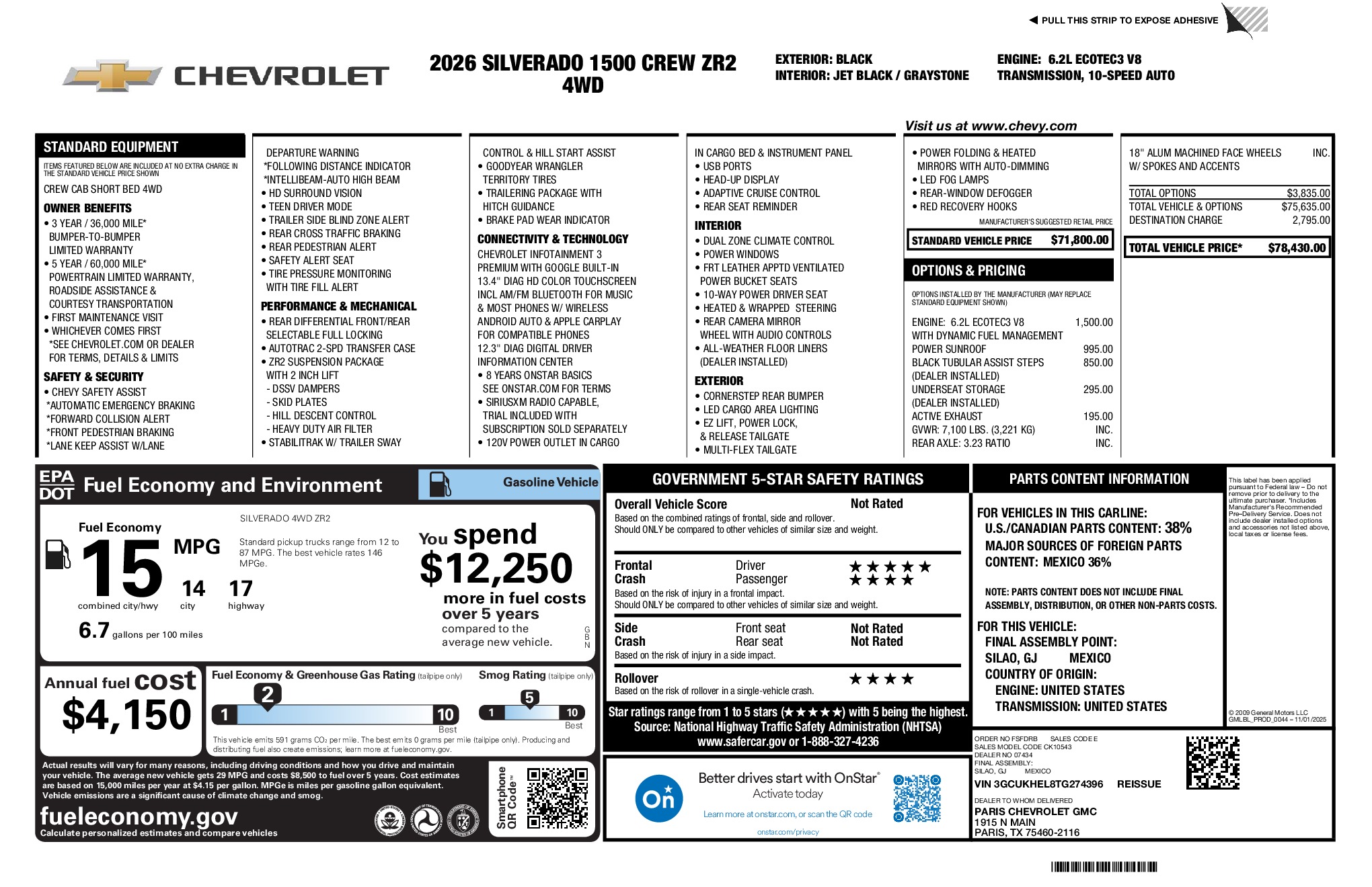 Chevrolet 2026 Silverado 1500 ZR2 EcoTec3 6.2L V8 4WD 10-Speed Automatic Black