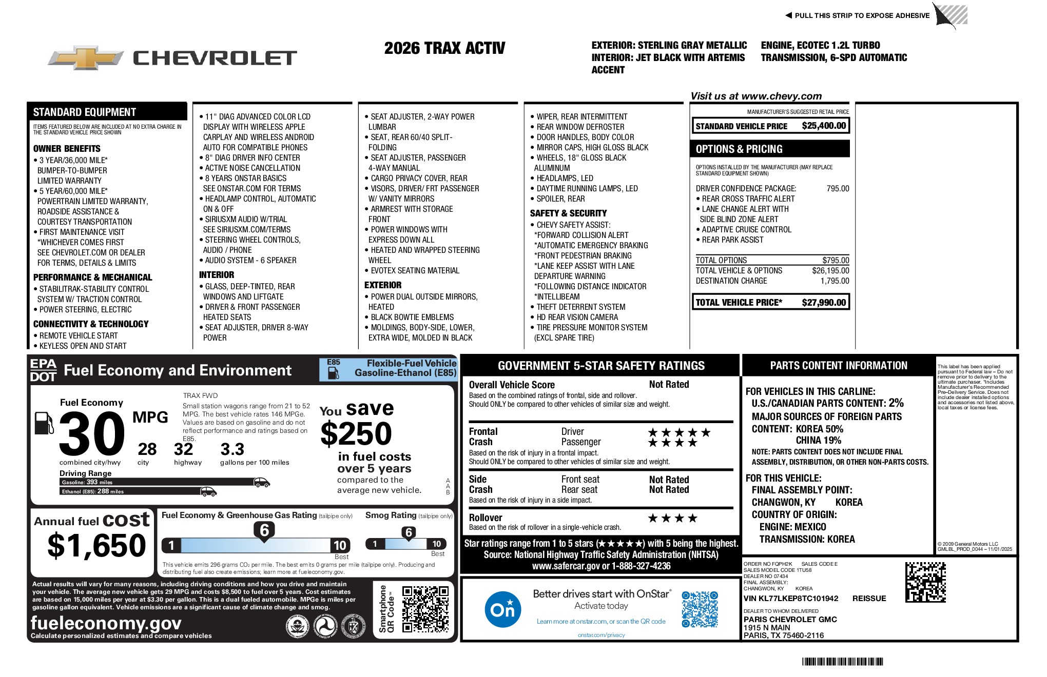 Chevrolet 2026 Trax ACTIV ECOTEC 1.2L Turbo FWD 6-Speed Automatic Sterling Gray Metallic