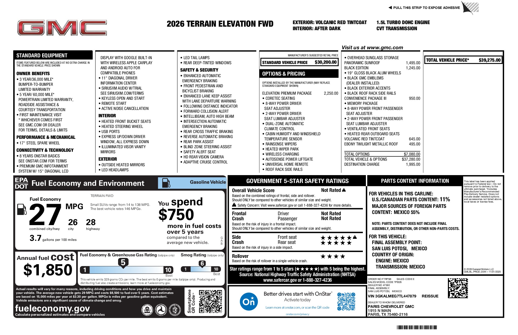 GMC 2026 Terrain Elevation 1.5L DOHC FWD CVT Volcanic Red Tintcoat